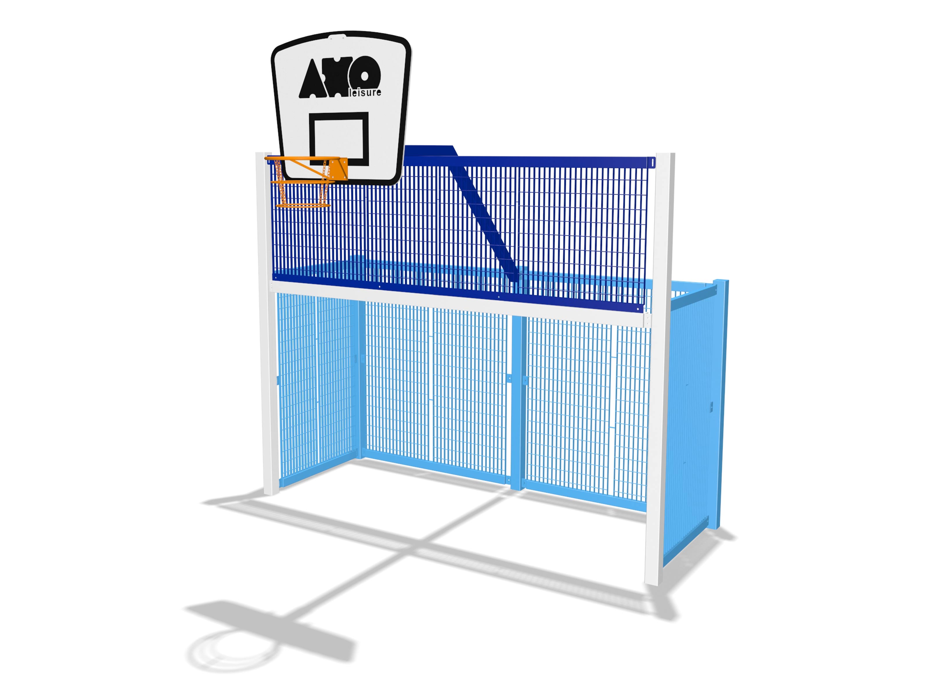 Pro courtsâ„¢ Multi-use goal end complete with football goal with closed goal back, basketball overhang with backboard, hoop and rings.