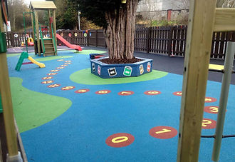 Wetpour surfacing consists of resin bonded rubber granuals, laid in varying thicknesses to provide protection for varying falling heights.